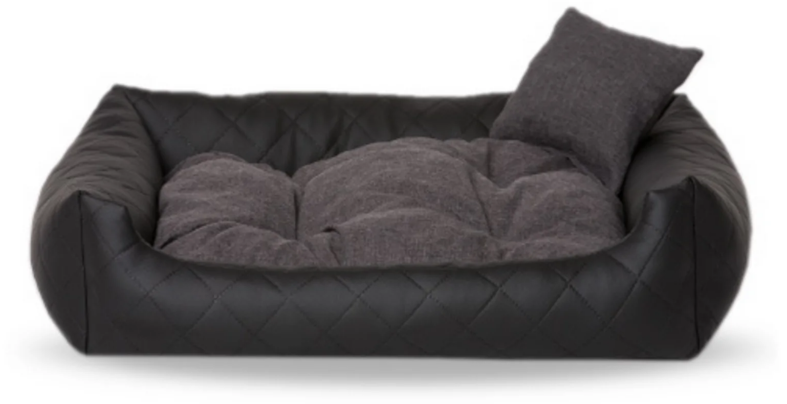 Praktický, štýlový pelech, vyberateľný vnútorný vankúš.3dielny pelech pre väčšie pohodlie maznáčika a pre ľahšie udržiavanie čistoty:- prešívaný poťah z eko kože - stačí utrieť vlhkou handričkou.- vyberateľný vnútorný vankúš z odolného, na dotyk jemného poťahového materiálu - ľahko je možné vyprať v práčke.- malý vankúšik pod hlavu z odolného, na dotyk jemného poťahového materiálu - ľahko možno vyprať v práčke.Vonkajší obalový materiál: pevná prešívaná, ekologická kožaVonkajší materiál pre vyberateľný vnútorný vankúš a malý vankúšik: odolný poťahový materiál.