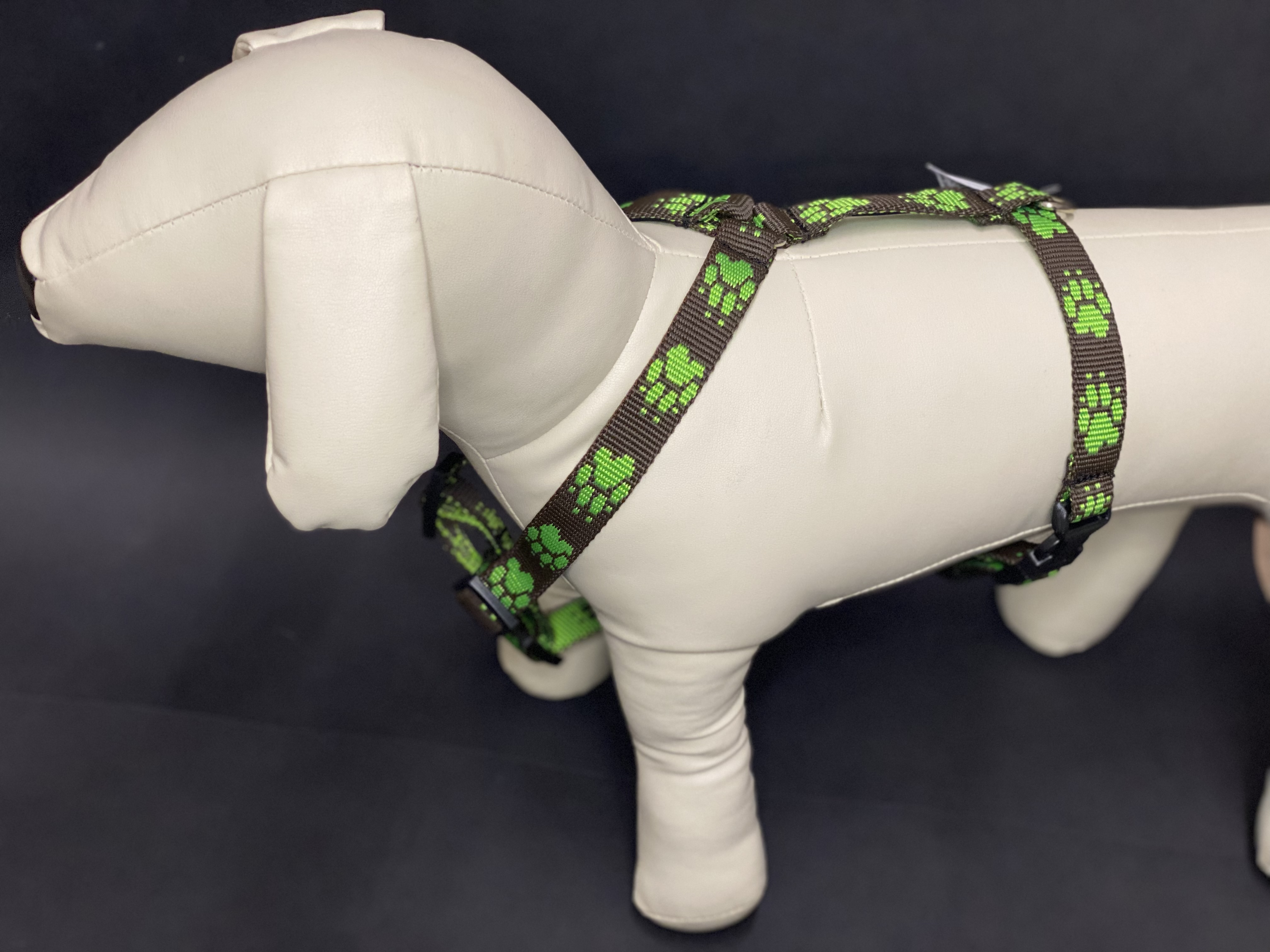 Palkar klasický postroj pre psov 28 cm - 45 cm veľ. 2 hnedo-zelená s labkamiSkladom > 5 ks7,50 €/ ks6,20 € bez DPH