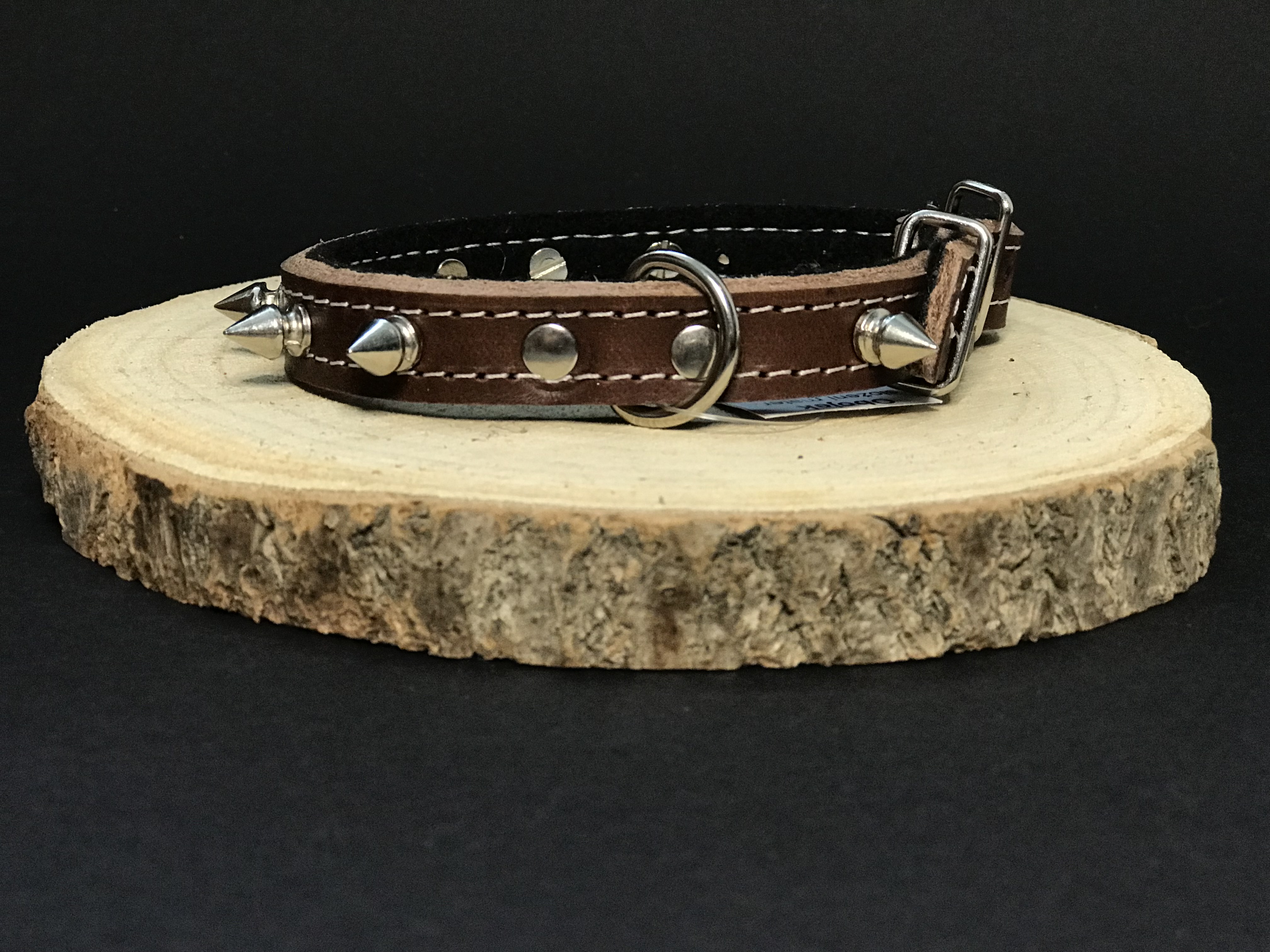 Palkar obojok z kože hladenice pre psov zdobený hrotmi 35 cm x 14 mm hnedýSkladom > 5 ks18,10 €/ ks14,96 € bez DPH