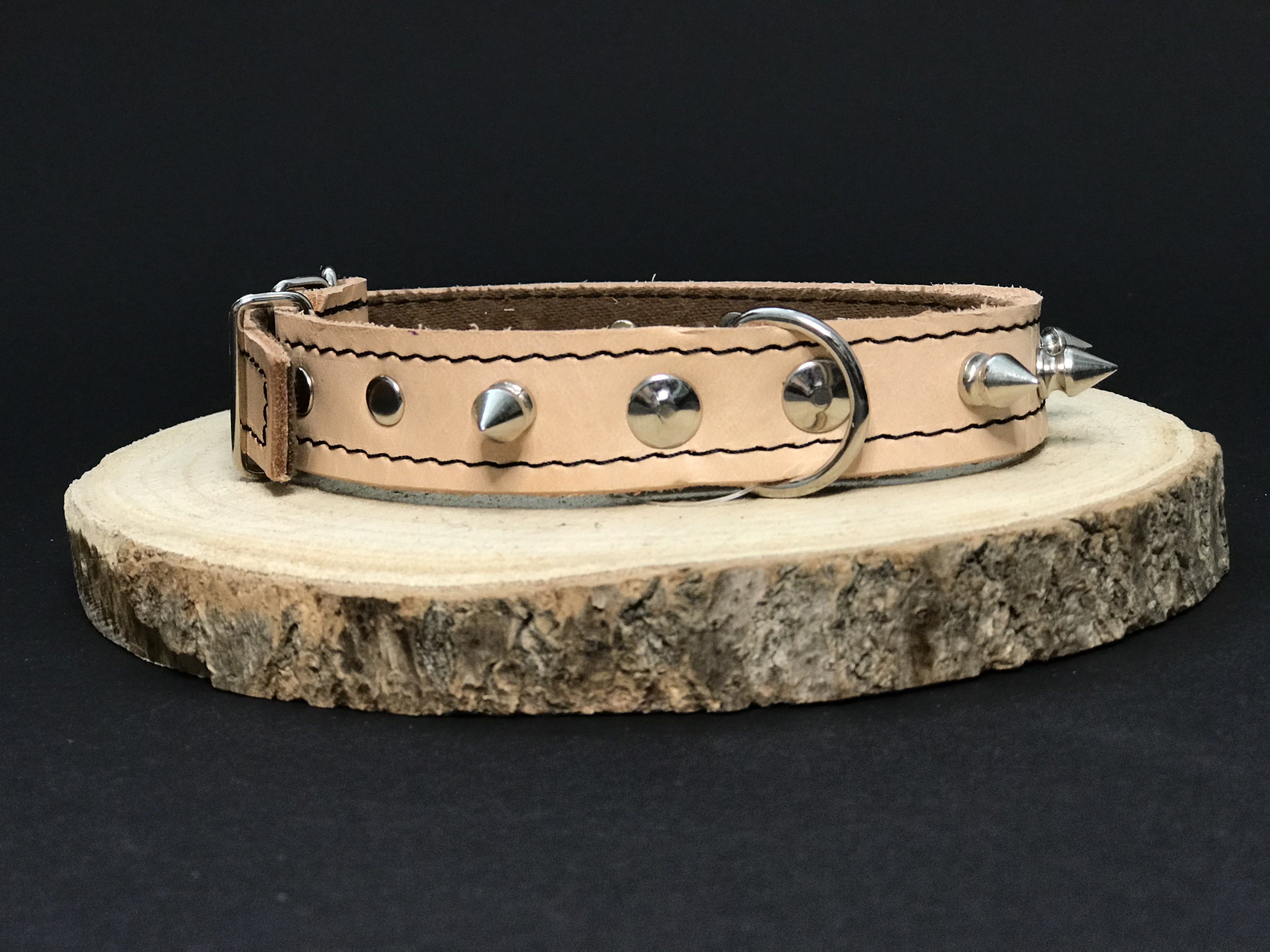 Palkar obojok z kože hladenice pre psov zdobený hrotmi 40 cm x 18 mm prírodnýSkladom > 5 ks19,90 €/ ks16,45 € bez DPH