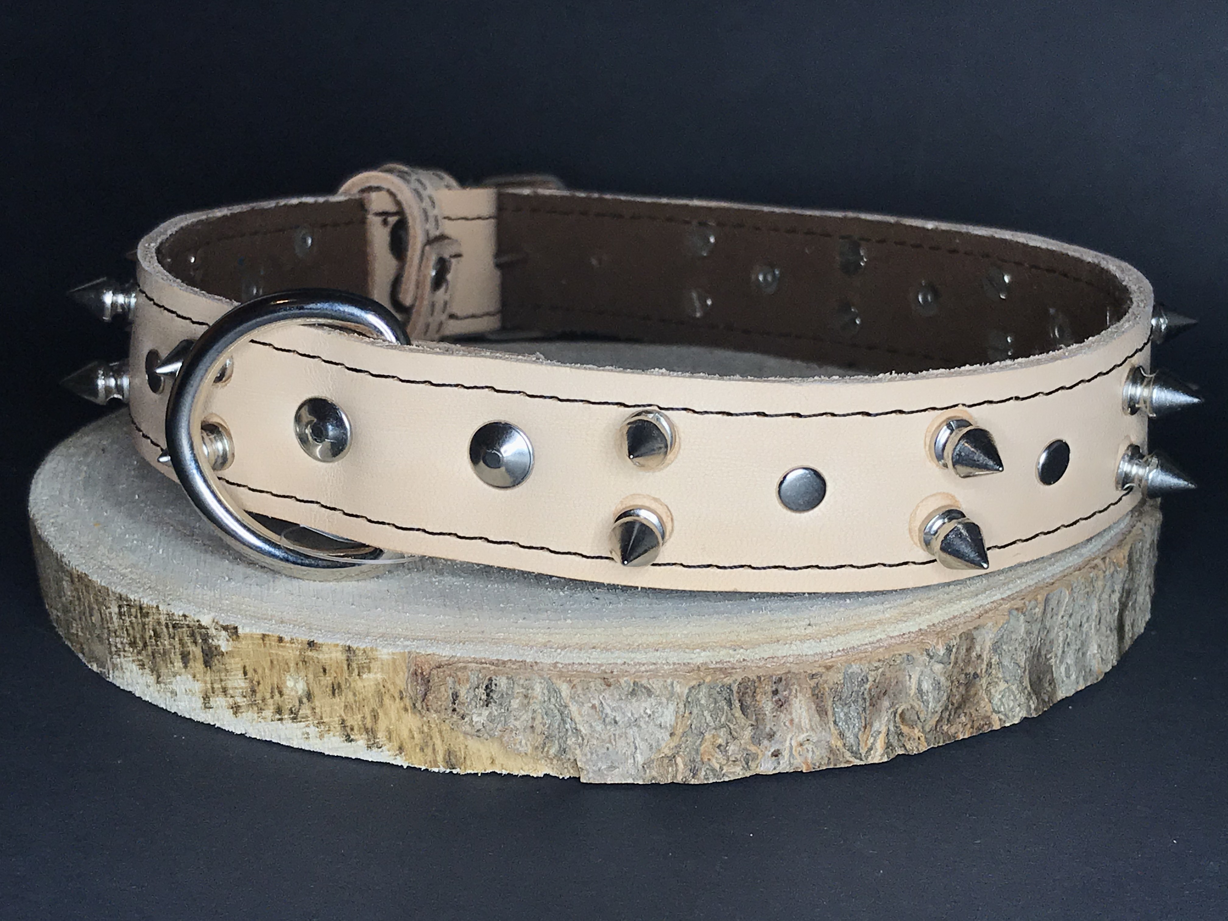 Palkar obojok z kože hladenice pre psov zdobený hrotmi 65 cm x 30 mm prírodnýSkladom > 5 ks42,80 €/ ks35,37 € bez DPH