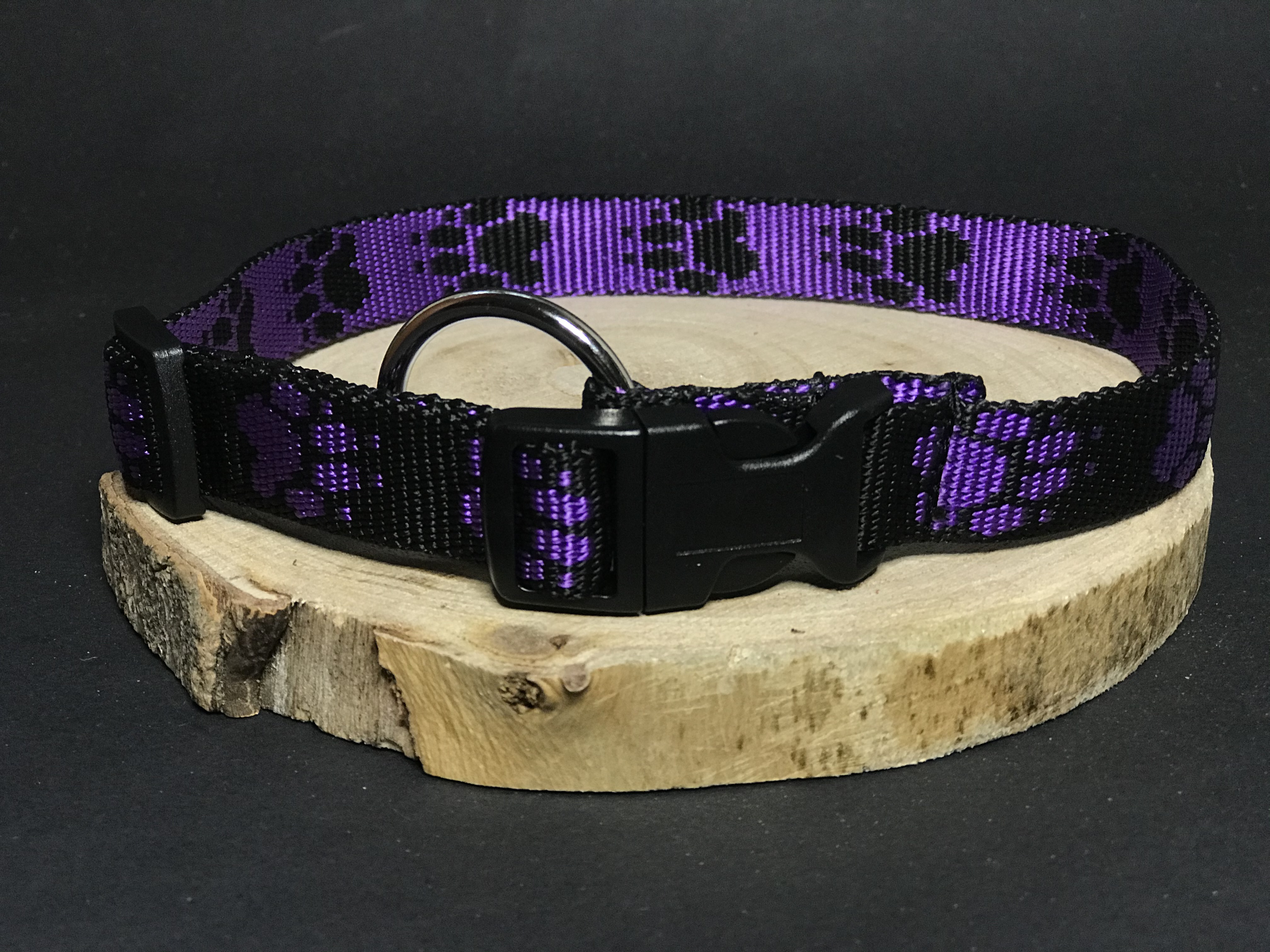 Palkar obojok z popruhu pre psov 50 cm x 20 mm čierno-fialová s labkamiSkladom > 5 ks5,70 €/ ks4,71 € bez DPH