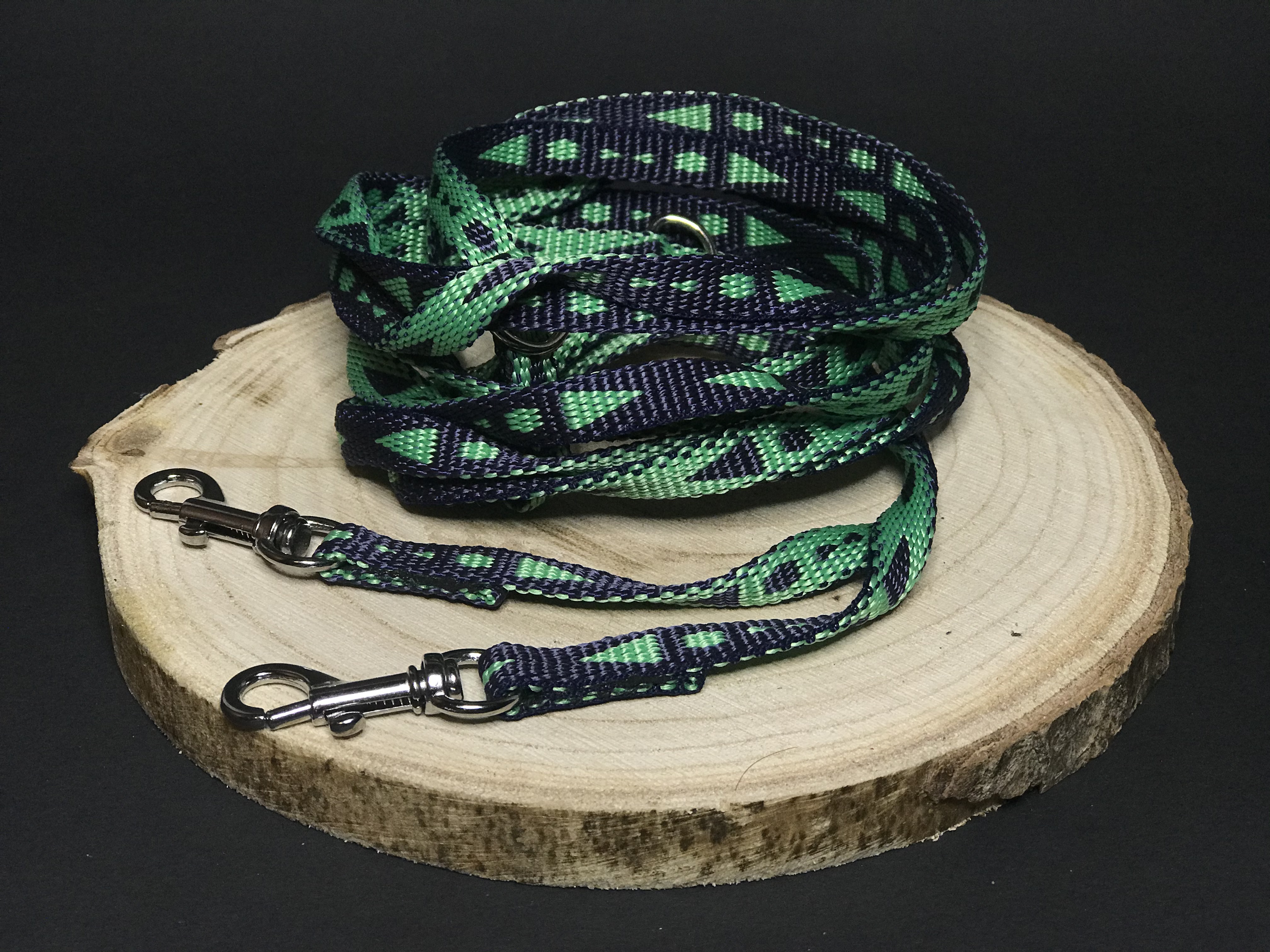 - Palkar vodítko prepínacie z popruhu pre psov 250 cm x 10 mm zeleno-modré šípky