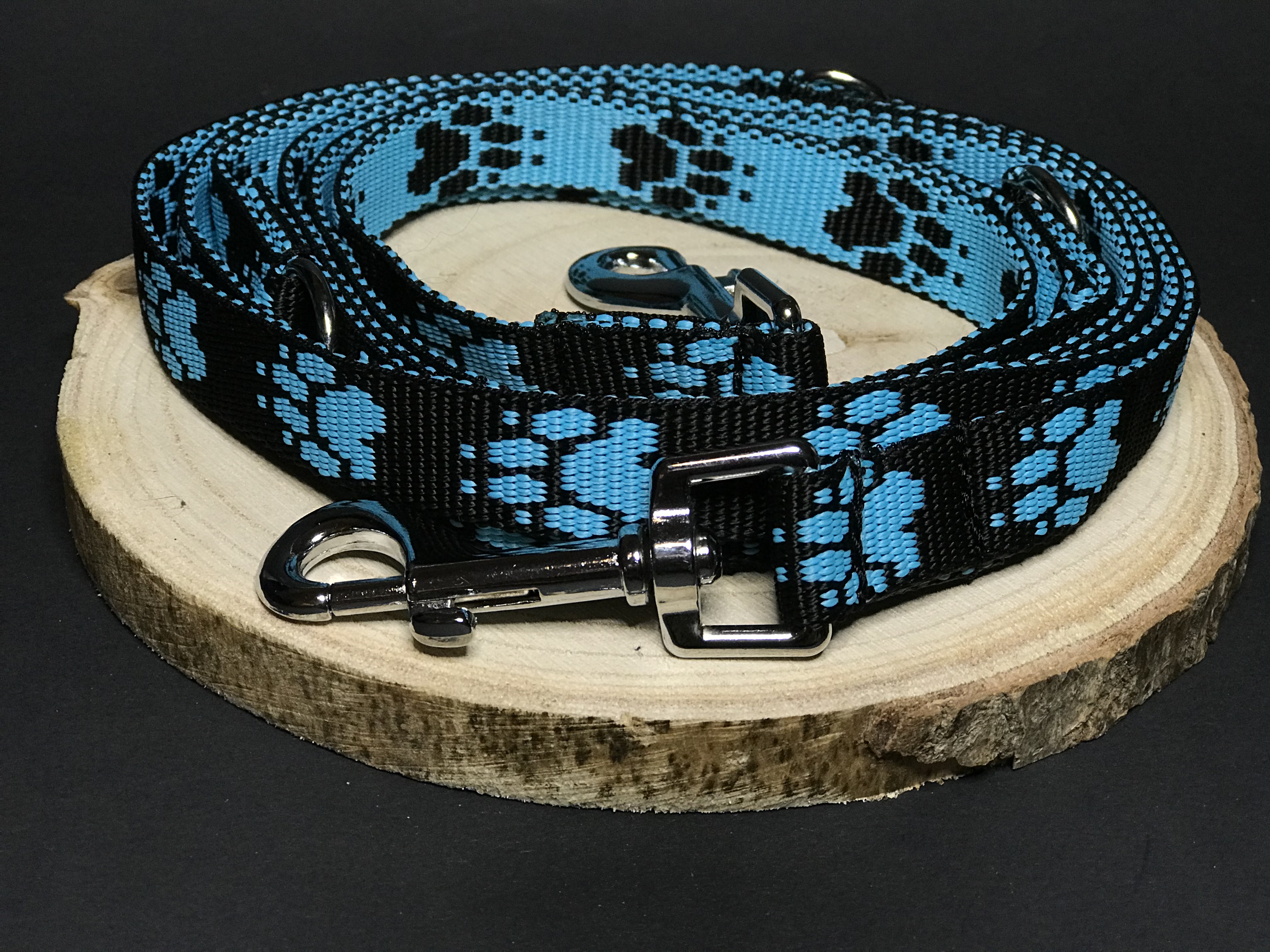 Palkar vodítko prepínacie z popruhu pre psov 250 cm x 20 mmčierno-svetlo modrá s labkamiSkladom > 5 ks11 €/ ks9,09 € bez DPH