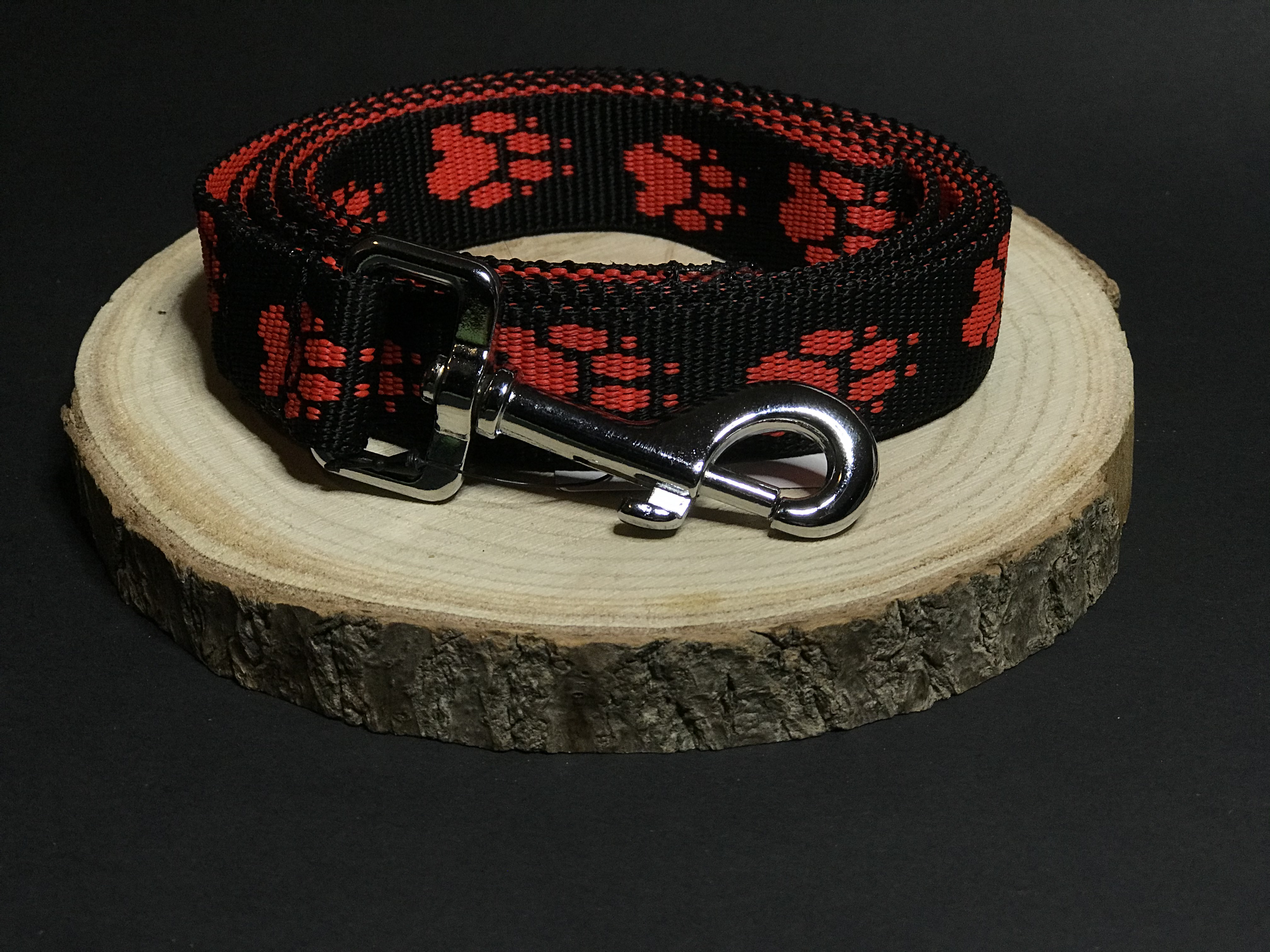 Palkar vodítko z popruhu pre psov 150 cm x 25 mm čierno-červená s labkamiSkladom > 5 ks8,50 €/ ks7,02 € bez DPH